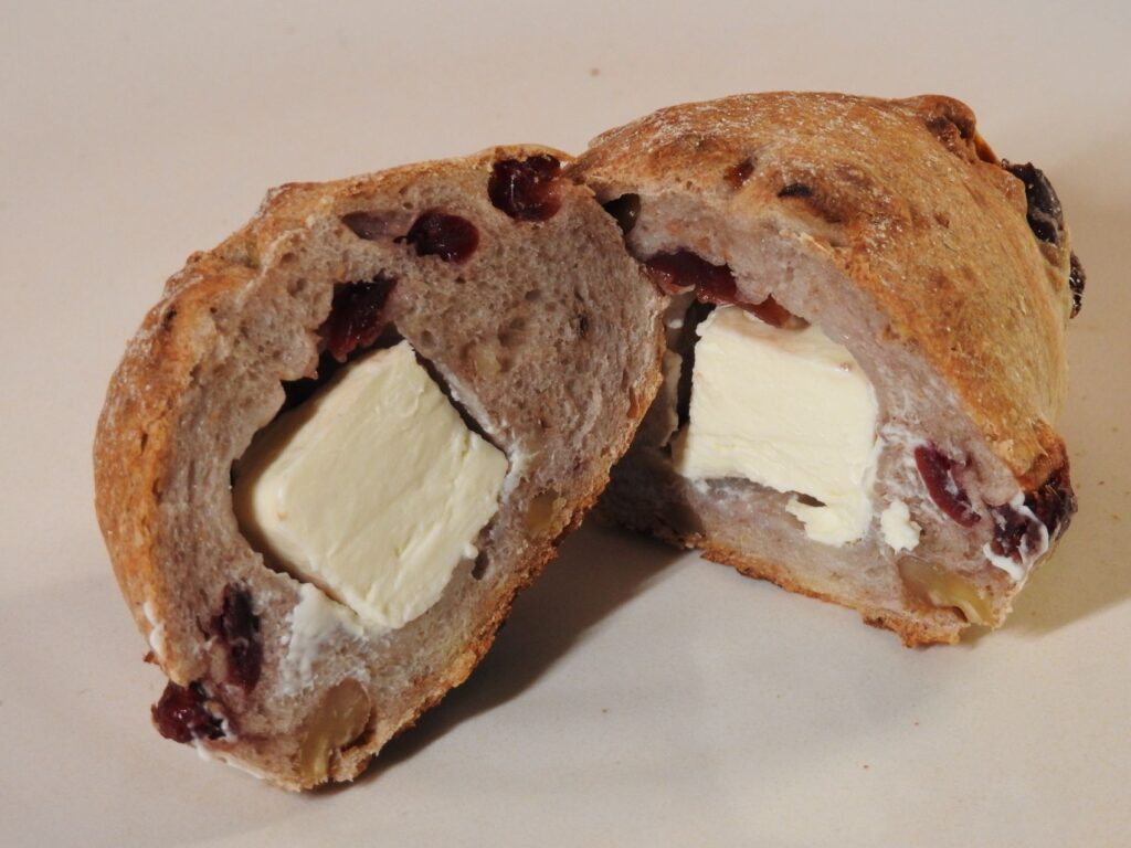 ご覧ください。このチーズの大きさ。しっかりとしたパン生地がクランベリーとクリームチーズを口内でミキシングさせます。クリームチーズの甘さとクランベリー独特の酸味が混ざり合いが美味です。