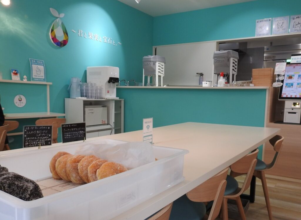 アクセントとなる壁色はティファニーブルー。本店と同じく商品ポップも親切で楽しいですね。
