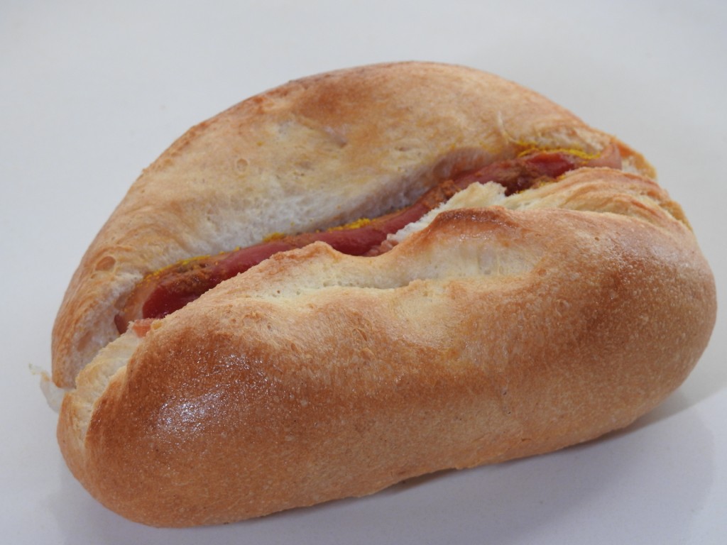 ドイツではソーセージをカレー風味で食べることが多いそうです。ですからまさにドイツ風パン。ソーセージはものすごくジューシーです。その肉汁とザワークラウトの酸味をカレーがまとめていますが、それらを包み込んでいるのがやはりしっかりとしたパン。
